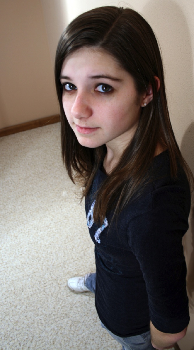 Katie in Blue Shirt and Blue Jeans