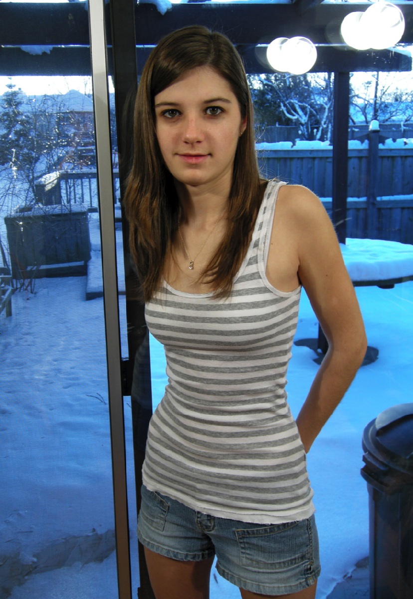 Katie in Summer Shorts With Winter Background